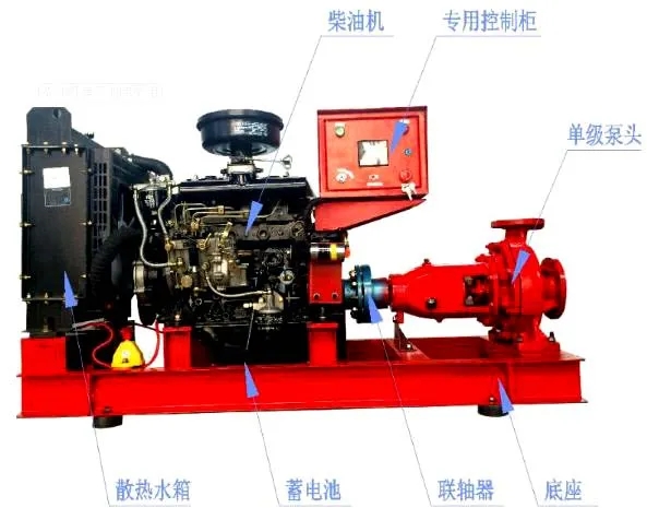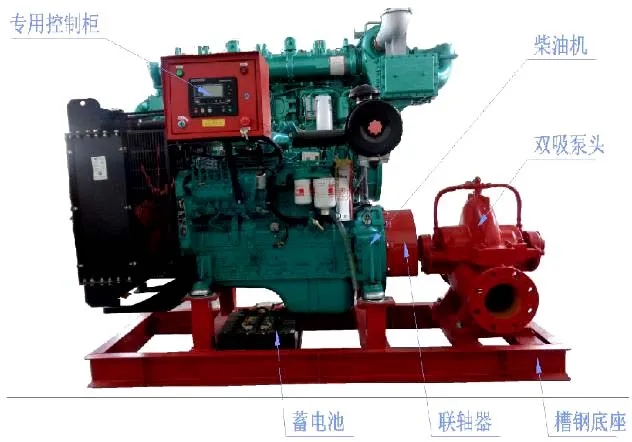 柴油機消防泵國標名稱為“工程用柴油機消防泵組”,國標型號為XBCL/Q 其中L為揚程值,Q為流量值。XBC型柴油機消防泵組是最新照國家標準為GB6245-2006《消防泵性能要求和試驗方法》。該系列產(chǎn)品揚程、流量范圍廣,完全能滿足倉庫、碼頭、機場、石油化工、電廠、液化氣站、紡織等工礦企業(yè)各種場合的消防供水。