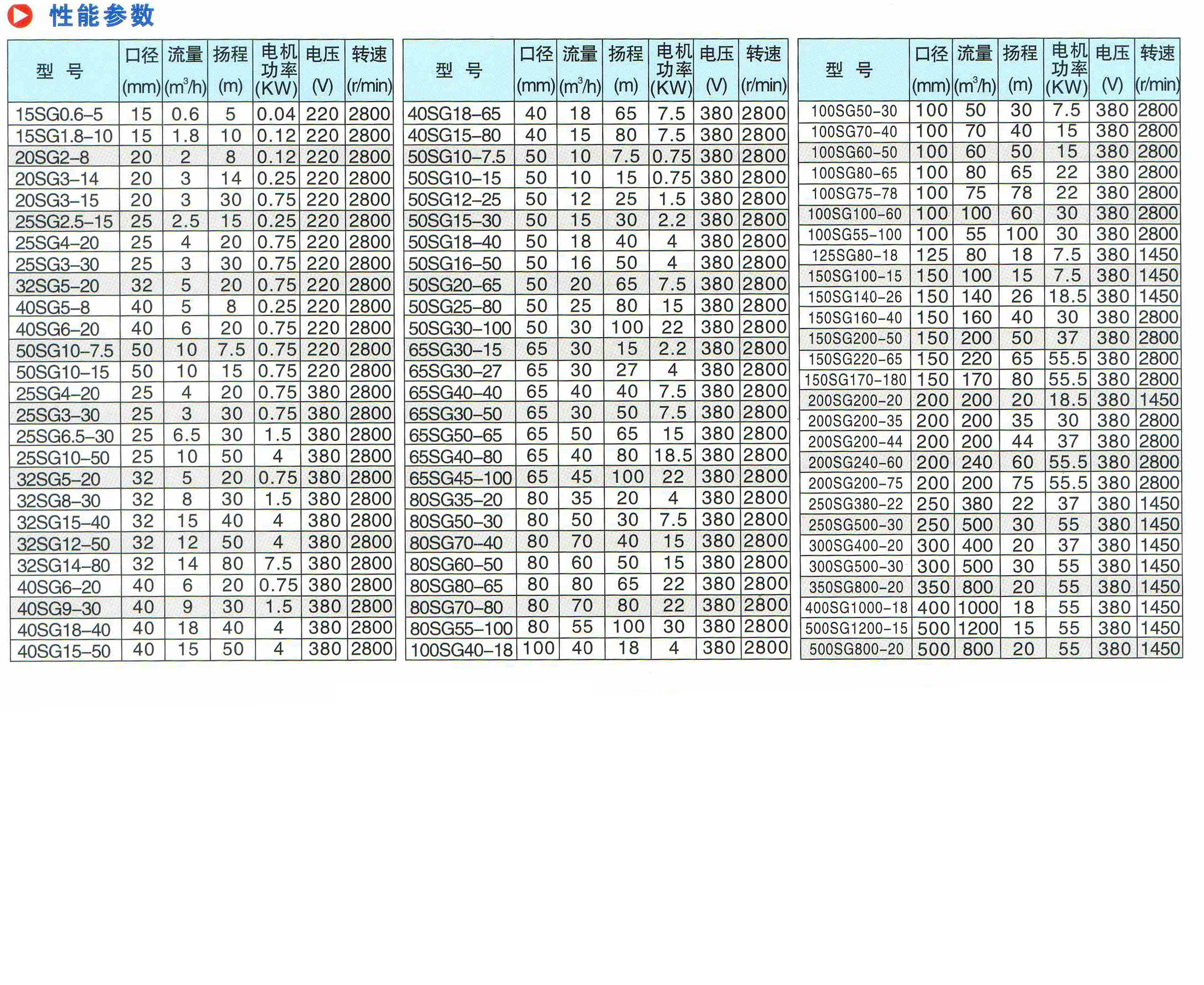 水泵參數說明